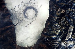 Ровно два года назад ранней весной, когда сильнее пригрело солнышко и на полях растаяли огромные снеговые ковры, учёные потрясли общественность сенсационной новостью. С помощью космических снимков в районе мыса Крестовского Байкальской котловины на льду появилось тёмное пятно диаметром 5-7 км. Правильной формы кольцо было со светлым пятнышком посредине и напоминало глаз, располагалось недалеко от берега в зоне примерно километровой глубины.