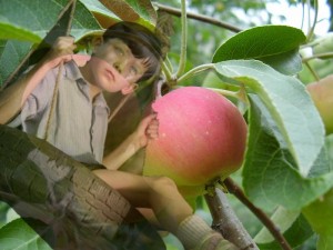 Росла в лесу дикая яблоня. А недалеко жил мальчик. Он часто приходил к ней, собирал сухие листья и делал с них себе корону, чтобы быть похожим на царя леса. Дерево угощало его яблоками, он любил прыгать с веточки на веточку, когда же сильно уставал, засыпал под широкой кроной. И яблоня была счастлива. Ведь ему было хорошо.