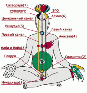 Чакры – биологически активные центры, аккумулирующие энергию из пространства для работы органа или системы органов. Всего их семь и располагаются они следующим образом: 7 – на 2 см над уровнем макушки, 6 – центр лба, 5 – на уровне яремной ямки, 4 – на уровне груди между сосками, 3 – уровень диафрагмы, 2 – чуть ниже пупка, 1 – находится на уровне гениталий.
